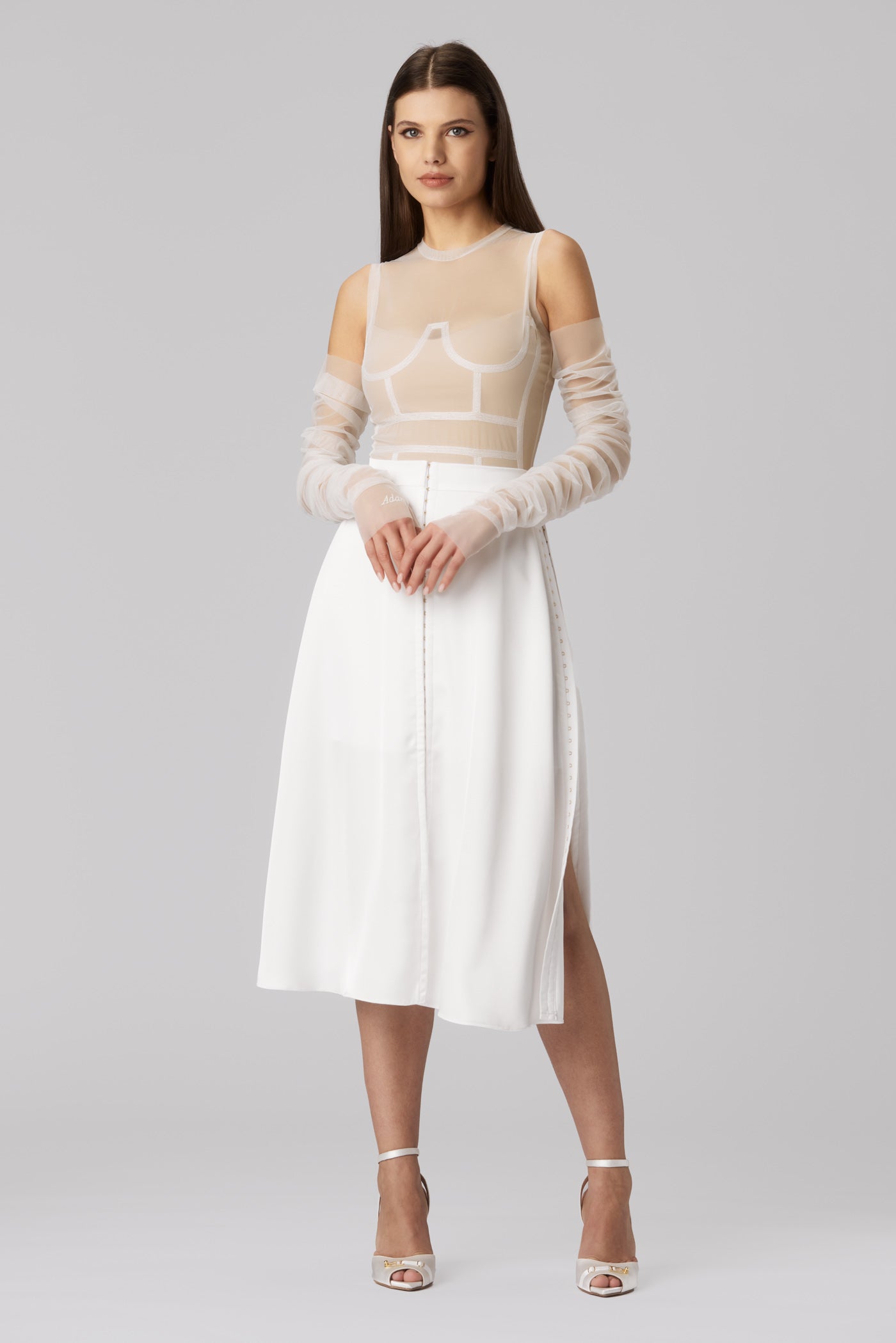 O celebrare a siluetei feminine prin piese-emblema MURMUR. Fuste, rochii si corsete devenite iconice pe scena si pe covorul rosu, alaturi de tricouri statement, colanti second-skin si propuneri noi cu accente light si taieturi rafinate. Intre zi si seara, cocktail si bridal, colectia traseaza o linie senzuala intre familiar si neasteptat.